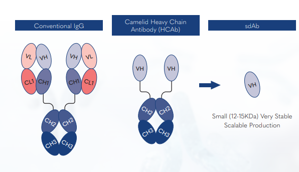 SdAbs provide a new mechanism for the generation of antibody therapeutics and offer numerous advantages such as better tissue penetration, ease of expression, stability and uniformity of product.