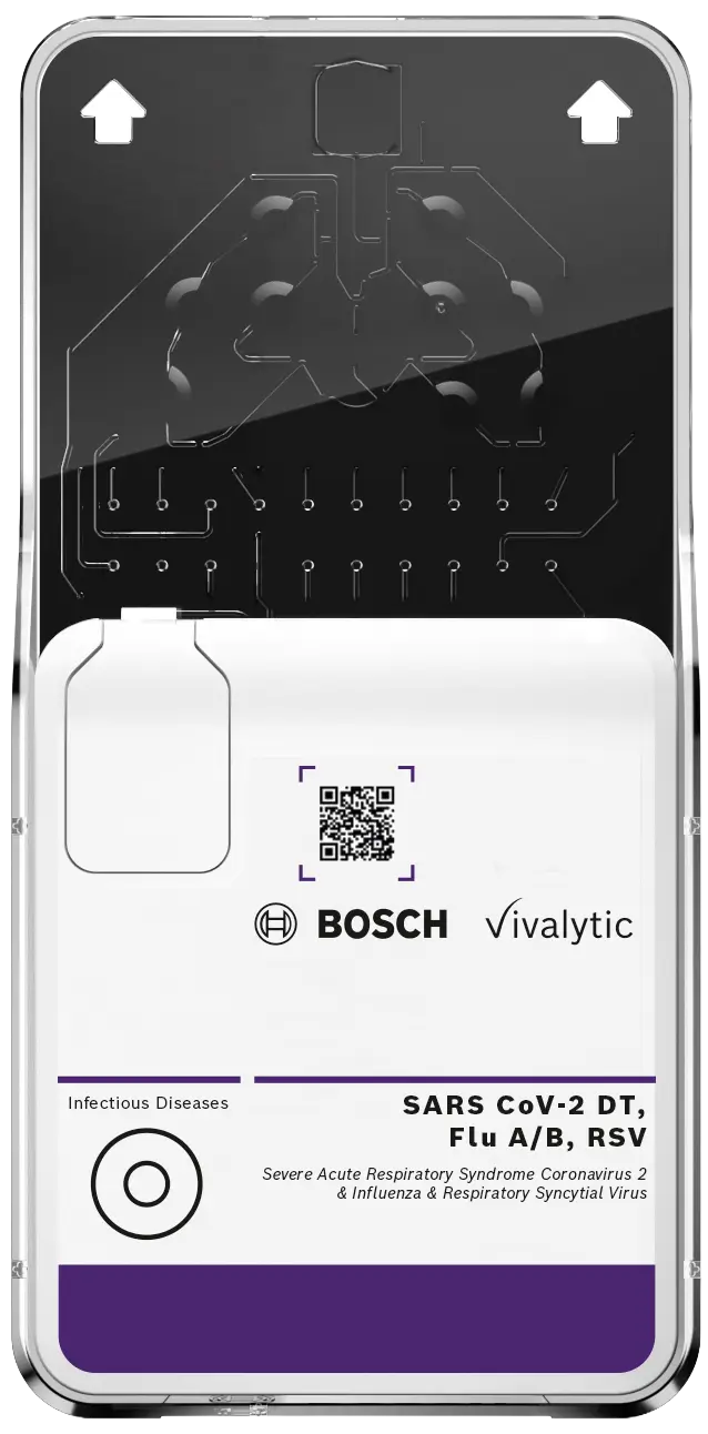 To begin the test, the user scans or enters sample information. The cartridge code is then scanned into the embedded Vivalytic software. The user then adds sample into the dedicated cartridge slot, closes the lid and inserts the cartridge into the Vivalytic.