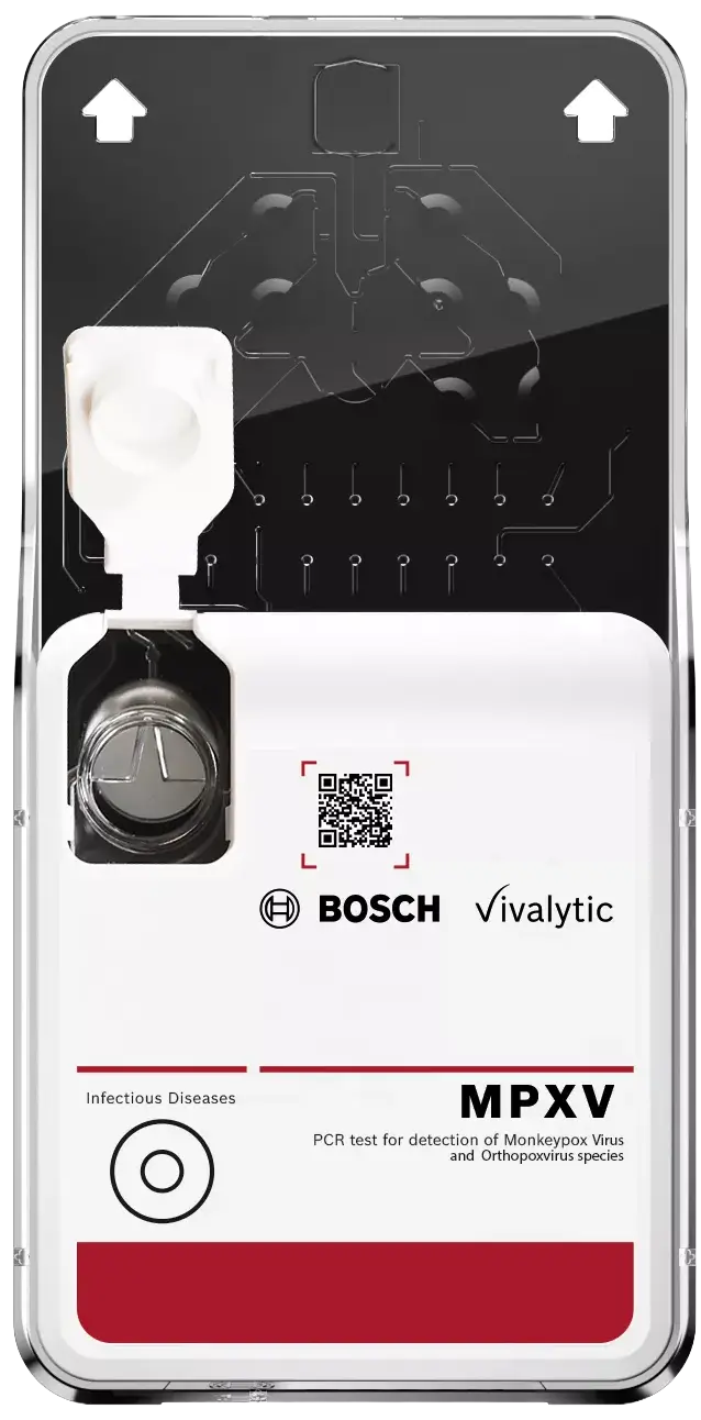 Vivalytic Monkeypox virus (MPXV) is a rapid and user-friendly test designed to aid the global response against Monkeypox. Monkeypox is a zoonotic virus belonging to the Orthopoxvirus subset genus within the Poxviridae family. It spreads between species through animal bites and the transfer of bodily fluids. Human-to-human transmission can occur through contact with infected lesions, inhalation of respiratory droplets, and indirect exposure to contaminated objects. Sexual contact is recognised as a significant mode of transmission during outbreaks of infection.