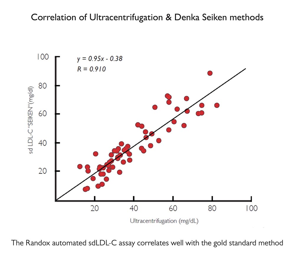 A correlation coefficient of r=0.91 was displayed when the Randox methodology was compared against the gold standard method, ultracentrifugation.