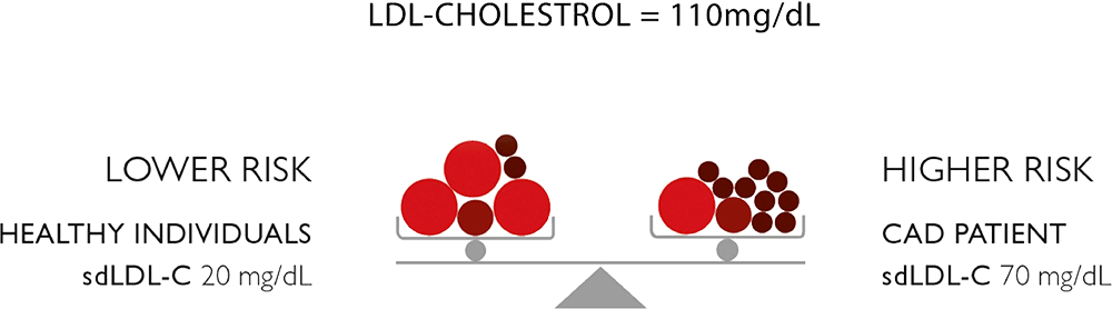 As sdLDL-C is particularly atherogenic, a person with elevated sdLDL-C levels has a 3-fold increased risk of myocardial infarction (MI)2.